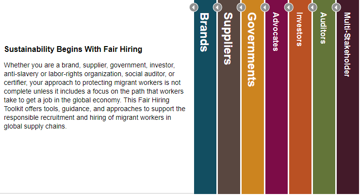 How can it help? – This interactive toolkit by Verité offers a framework for businesses, their suppliers and other key stakeholders to support the responsible recruitment and hiring of migrant workers in global supply chains. The toolkit provides concrete tools and actions with examples of best practice to help businesses improve hiring and labor conditions.